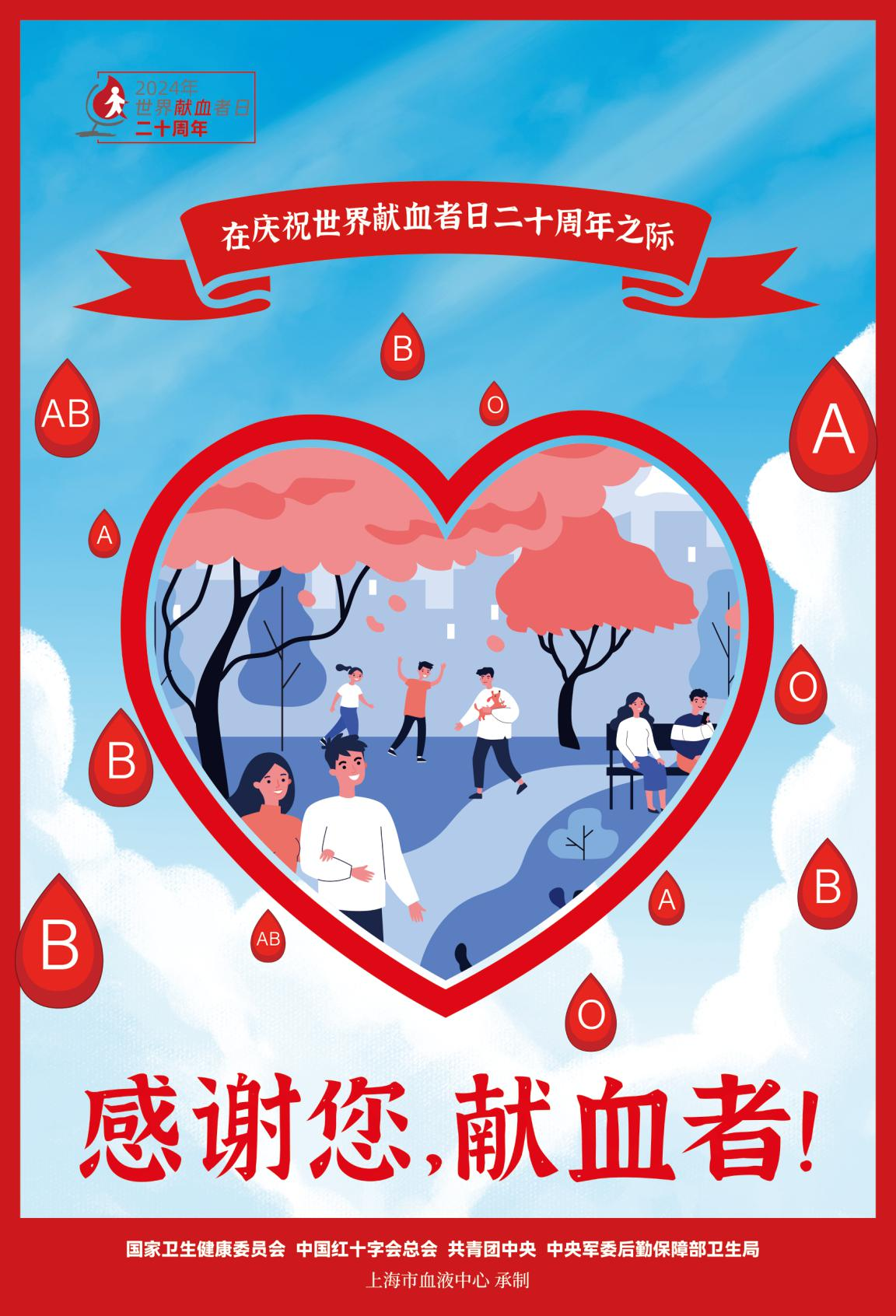 为指导各地做好世界献血者日宣传工作,致敬无偿献血者,营造有利于无偿献血健康发展的良好社会氛围,国家卫生健康委员会、中国红十字会总会、共青团中央和中央军委后勤保障部卫生局联合发布2024年世界献血者日宣传海报。宣传海报共5张,包括主海报1张,系列海报4张。